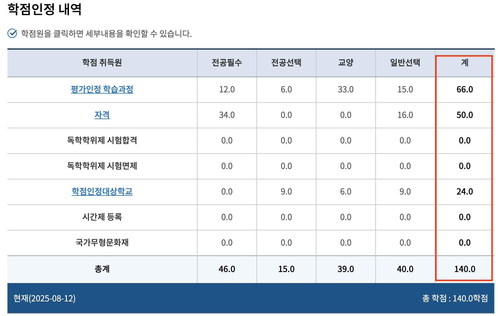 2-3.학점인정대상대학교: 1학기 다니고 제적당한 대학학점 24점