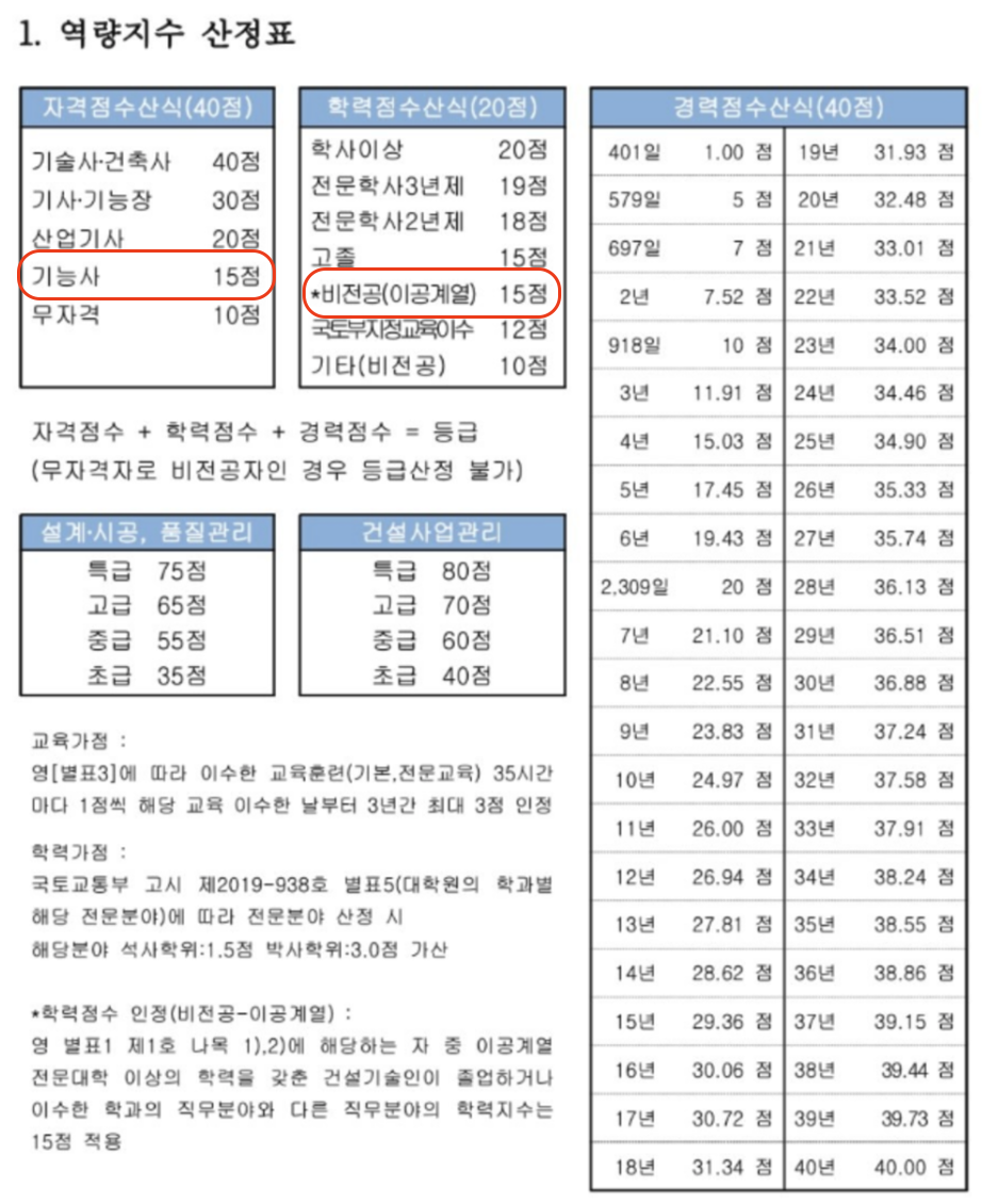 기능사(건축제도)15점 + 이공계열15점 + 교육(5점) 으로 설계시공초급 발급했습니다.